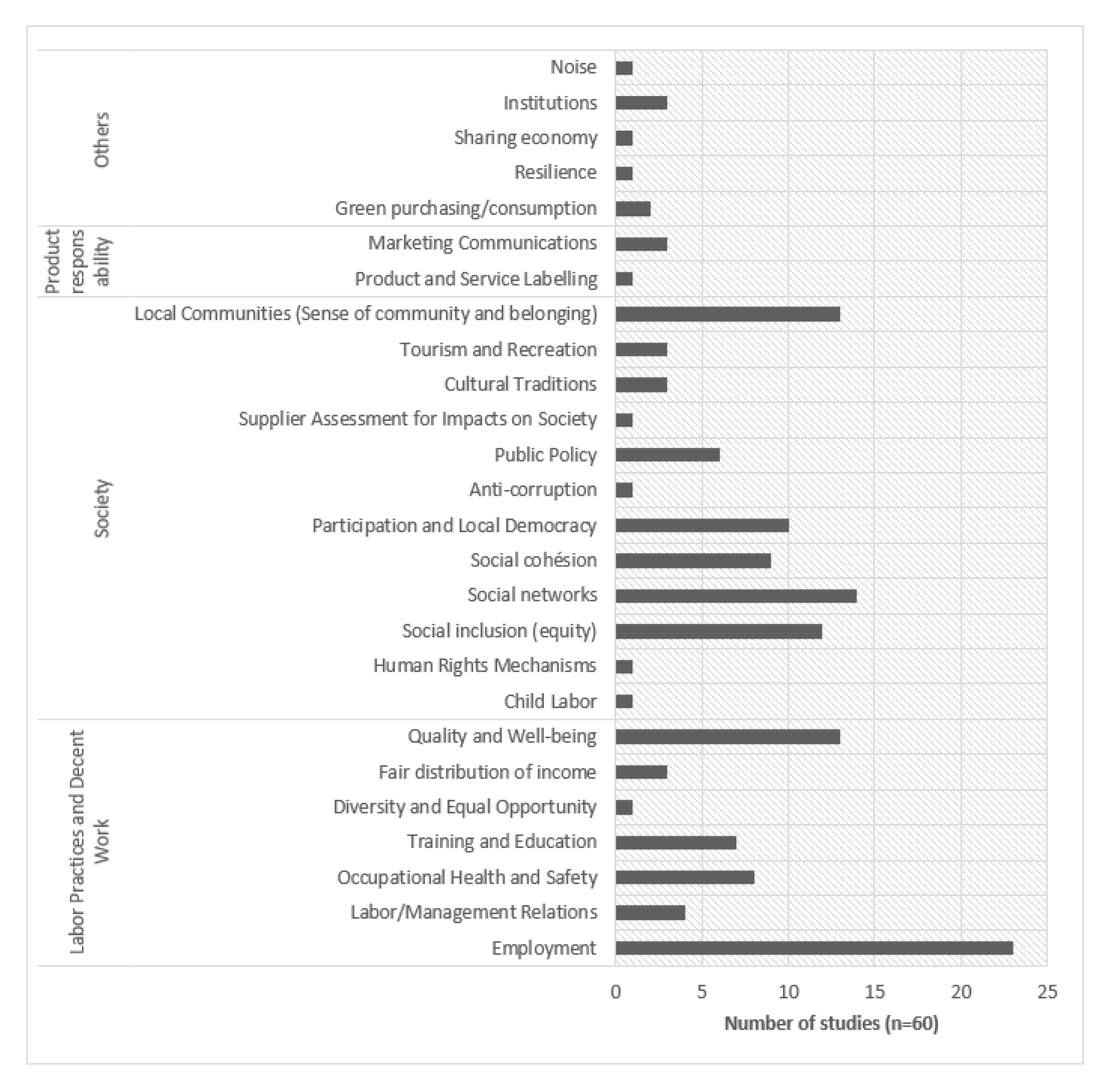 Regardless of the definition of social sustainability, there is plenty of overlap between society and CE. A systematic review from the Polytechnique Montréal and the Université du Québec à Montréal gives hints of that overlap. The researchers studied 60 peer-reviewed journal articles published between 2009 and 2019 and extracted multiple thematic areas and aspects of the social impacts of CE. They found that employment has the highest frequency in the reviewed studies, followed by quality and wellbeing, social networks, and local communities. Other relevant factors include social inclusion, training and education, and participation and local democracy.